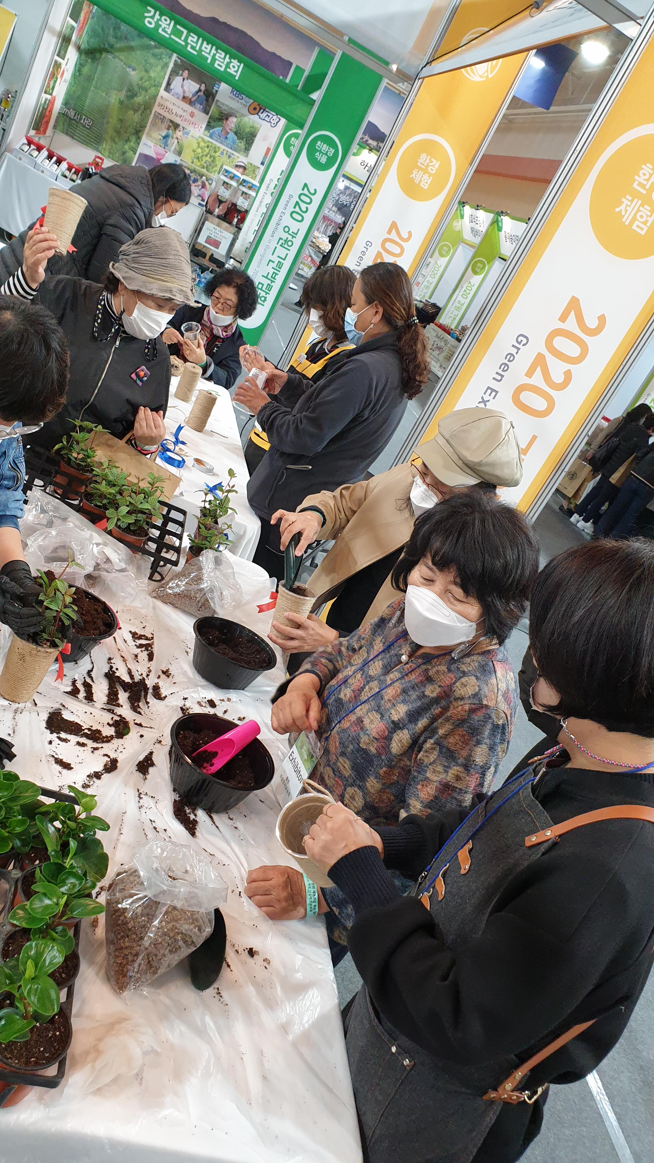 한국 힐링 교육연구원은 재활용 컵으로 활용한 컵화분 무료체험코너로 참가했다. 강원도와 춘천시가 후원한 이번 박람회는 ‘그린 뉴딜’에 발맞춰 청정에너지와 신재생에너지 정보를 교류하고, 청정·재생·친환경·바이오를 아우르는 그린산업 전반을 한자리에서 체험하는 매머드 박람회로 꾸며졌다.